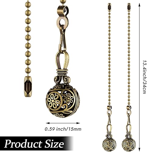 What will you get: the package comes with 4 pieces hollow ceiling fan chains, and each of them measures about 13.4 inch/ 30.1 cm in length; Retro pull chain can match any style of house and bring you different visual effects