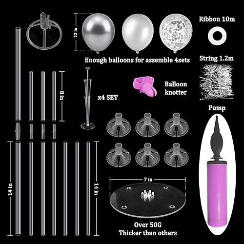 • WHAT INLCUDE: This balloon stand kit include 4 set balloon holders, 35 pcs balloons - black and gold balloons, gold confetti balloons, balloon pump, ribbons, glue dots and tie tool