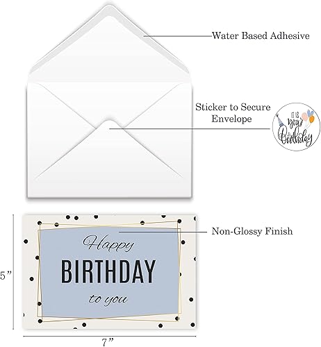 SUPERIOR QUALITY ASSORTED BIRTHDAY CARDS : We ensure that the happy birthday cards we make for you are measures 5x7 inches high-quality cards made with thick card stock of 350 GRAMS . Cards are thick, sturdy, matte finished.