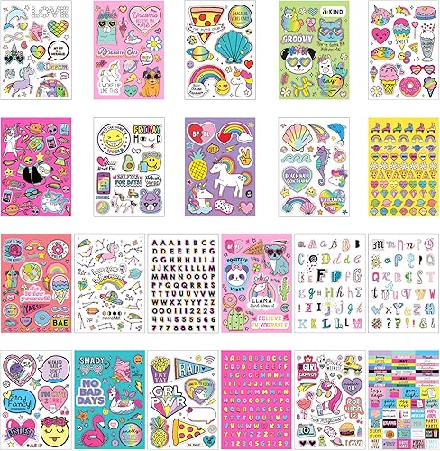 43 UNIQUE PAGES: Dream big with 43 different pages of stickers featuring adorable fruits and plants, alphabet stickers to spell out fierce messages, and magical decorating stickers!