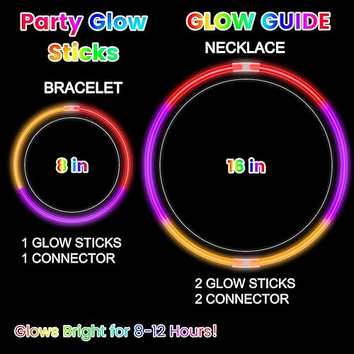 Endless Nighttime Party Fun: Bend to activate them, Snap them along entire tubes, and shake them to start glowing in the dark with various bright colors. With our connectors, Whether you are make beautiful glow necklaces or glow bracelets, writing letters and numbers or creating party decorations, our glow party favors set has it all. These festival party supplies glow sticks bulk are perfect to nighttime keep any event lively! Perfect for glow in dark party supplies, neon themed party favors.