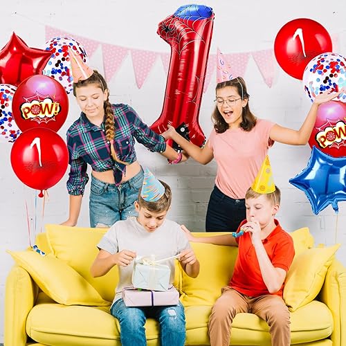 Cartoon Hero 40 Inch Red and Blue Spider Theme Number Foil Birthday Decoration Balloons, Cartoon Party Birthday Supplies, Number large Balloons for Spider Theme Party (3)(1)