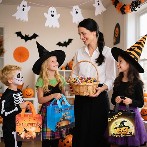 Perfect Halloween Treat Bags – 7.9"x7.9"x5.9" reusable tote bags hold all your trick-or-treat candy, spooky goodies & small toys. Easy-carry handles make them kid-friendly for neighborhood hauls & Halloween parties. Durable & lightweight – ideal for school events, haunted houses & festive fun!