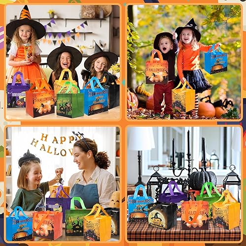 RICEDUO 6 Pcs Halloween Trick or Treat Bags, Non-Woven Halloween Tote Bags with Handles, Reusable Candy Goodie Bag for Kids Adults Party Favors Supplies, 7.9×7.9×5.9"
