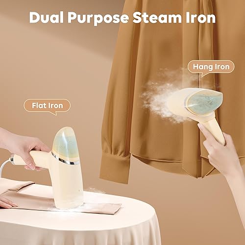 2-in-1 Iron Steamer: Two modes for your choice, hanging ironing is suitable for large crease treatment, better with brush; flat ironing can accurately deal with collar, cuffs and other details