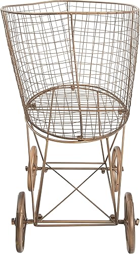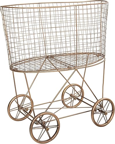 Creative Co-Op Vintage Reproduction Decorative Metal Laundry Basket on Wheels, Copper(Copper)