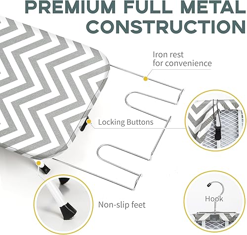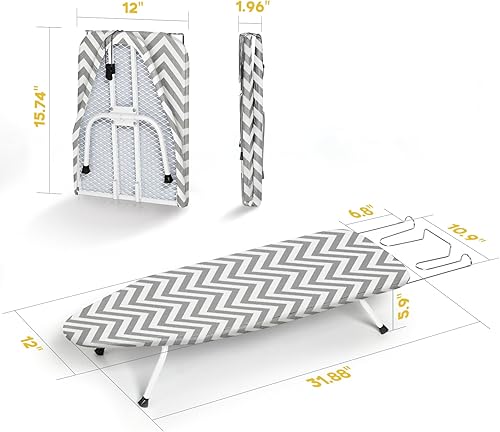 Comment on "Metal Foldable Tabletop Ironing Board with Iron Rest, Portable Ironing Board Small with Heat Resistant Cotton Cover, RAINHOL Mini Iron Board for Small Space and Travel, 31"x12", Gray(Grey Stripe)"