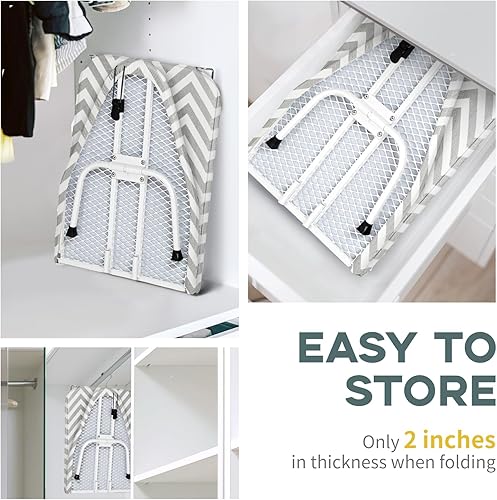 Highly efficient ironing: the metal mesh panel helps to dissipate heat more quickly; Equipped with a heat-resistant cover and 100% cotton pads for good ventilation to prevent damage to the tabletop ironing board and clothes