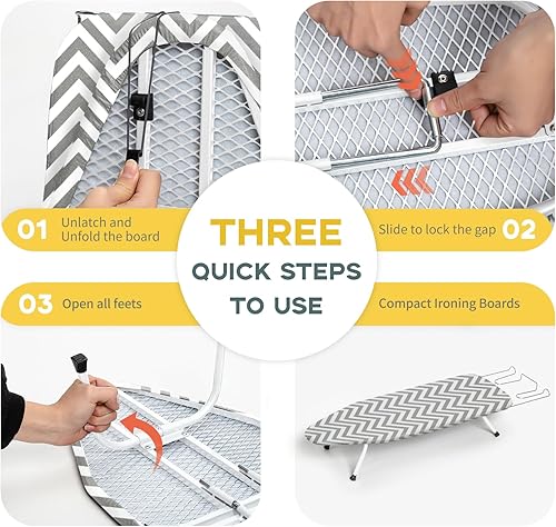 Sturdy and Stable: The feet is sturdy and durable with a non-slip silicone cap, and the sturdy structure ensures that the mini ironing board table top is stable enough
