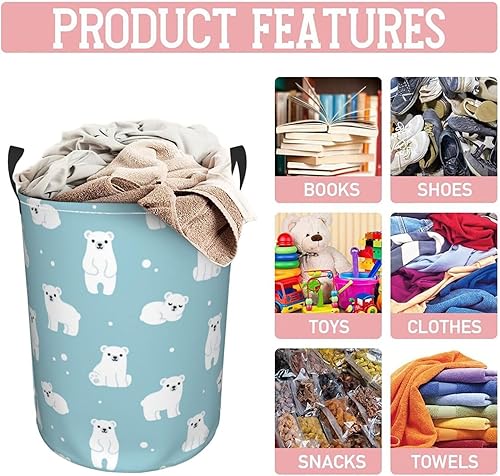 Gaming Joysticks Laundry Hamper Bag With Waterproof Liner - Video Game Controller Round Laundry Basket Foldable Clothes Storage Organizer For Bathroom Bedroom Nursery Dorm, M-19.6"X 15.7"(Cute Polar Bears,M(62L))