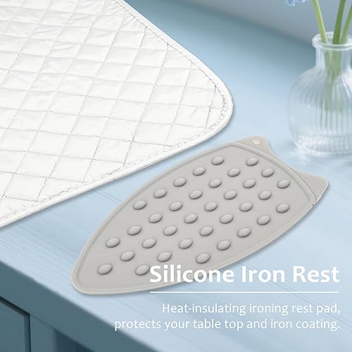 Complete Set for All Your Ironing Needs: Each package includes one large 48x85cm magnetic ironing pad, one silicone iron rest, and four 40x60cm blue heat-resistant mesh cloths. This portable ironing mat set ensures you have everything you need to protect your clothes and work surface while enjoying a smooth and efficient ironing experience.