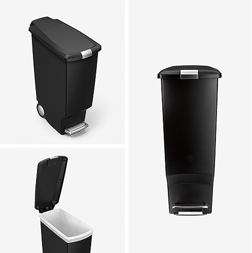 simplehuman 40 Liter / 10.6 Gallon Slim Kitchen Step Trash Can With Secure Slide Lock, Black Plastic(Black,40 Liter)