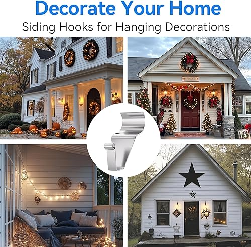 Wide Application:The steel siding hook for string lights hangers can decorate your front room, such as hanging outdoor decorative lights, wooden signs, Christmas wreaths, potted plants, pictures, paintings, outdoor patio decorations