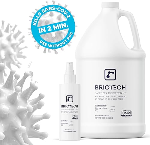 BRIOTECH Sanitizer Disinfectant Hypochlorous, Kill 99.99% of Viruses & Bacteria, Control Mold, Eliminate Odor, Gentle for Nursery & Play Rooms, Food Contact Surface Sanitizer, 1 Gallon Refill(32 fl oz Refill (Pack of 2))