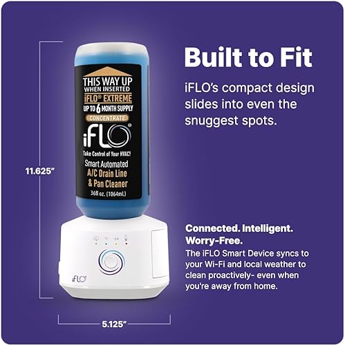 POWERFUL BIO-ENZYMATIC FORMULA: The iFLO cleaner cartridge dissolves zooglea, buildups, and debris in your A/C drain line and drain pan, preventing clogs and costly repairs. Designed for smart dispensing, it ensures long-lasting maintenance for a smooth-running HVAC system.