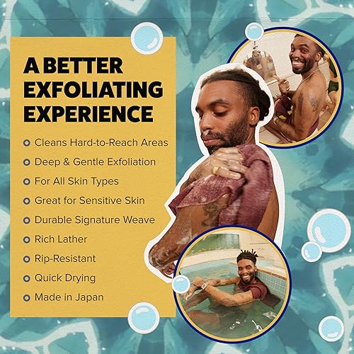 Signature Rip-Resistant Fabric: Our towel is made up of two uniquely developed threads woven together to balance exfoliant effectiveness and efficient cleanliness. It has a thin lathering thread, tightly woven to create a rich lather for a complete clean. Plus, a textured body exfoliator thread to scrub away dirt, oil, and dead skin cells, leaving your skin smoother and softer than you ever knew possible.