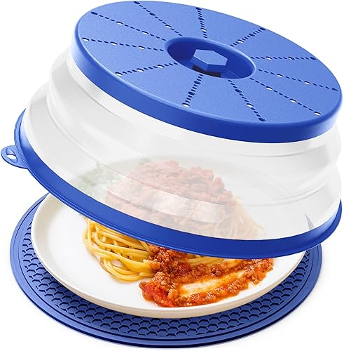 Microwave Cover: The collapsible microwave cover promotes even cooking and features a vented lid to keep your microwave clean. It measures 10.5 inches by 3.2 inches and fits over most plates and bowls.