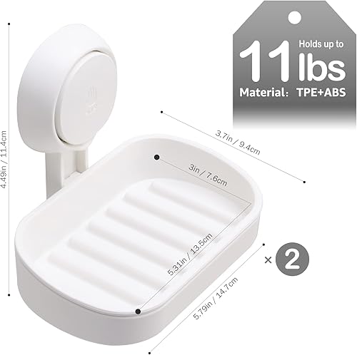 PATENTED PRODUCT & SUPER SUCTION POWER: TPE suction cup with patent bionic design of octopus tentacles and premium thickened ABS plastic have powerful suction and superior durability. It is waterproof and oilproof. The suction cup soap dish for shower wall can hold up to 6.6 LBS and stick sturdy for years. Besides, there is a support part behind it to protect shower soap dish from falling off