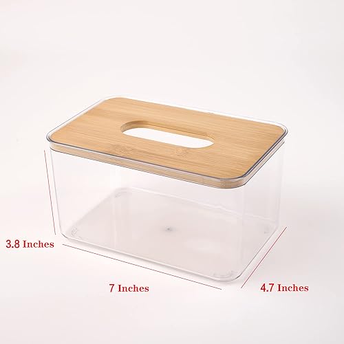 Upgraded Material: The acrylic tissue box is made of bamboo cover and thickened acrylic material, it is safe and durable, and the thickened material is protected from injury and breakage.