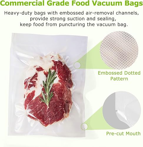 TIME & MONEY SAVING:Vacuum storage bags are pre-cut and ready-to-use, saving you time whenever you’re preserving leftovers, preparing make-ahead meals, and portioning bulk items in the freezer.