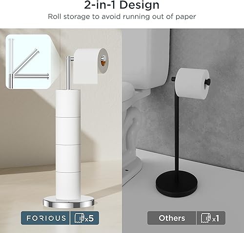 Comment on "FORIOUS Toilet Paper Holder Stand, Modern Freestanding Tissue Roll Holder for Bathroom, Durable SUS 304 Stainless Steel and Weighted Base Toilet Paper Stand, Storage for 4 Rolls, Brushed Gold(Chrome,23.2" H)"