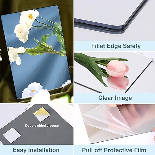 Reflective Effect: Our acrylic mirror with reflective effect can be applied for nice decorations; Reflective surfaces can make the space look larger and brighter;Please use mirror paste on a smooth surface, the flatter the wall, the better the reflection