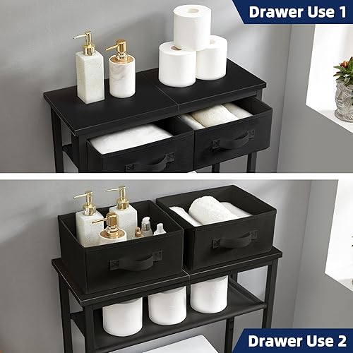 MOHOPE 2-Tier Over The Toilet Storage with 2 Fabric Drawers, Freestanding Above The Toilet Storage Cabinet, Space Saver Metal Over Toilet Bathroom Organizer Shelf for Small Space, White(Black)