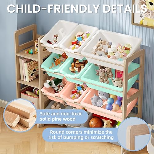 Solid Pine Wood:Unlike other melamine MDF toy storage organizer, which are prone to odours, warping and injury to children, this is made from natural solid pine wood and has a paint-free design that completely avoids these problems and is much safer and stronger.