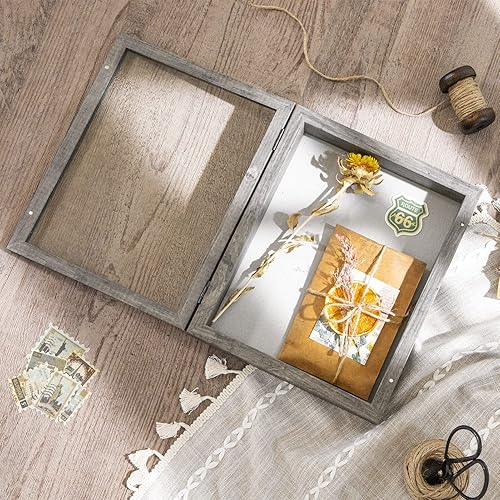 Califortree Outside 8x10 Shadow Box Frame with Linen Back - Real Glass, Push Pins Included, Sturdy Rustic Memory Display Case, Fits Photos or Items Under 6x8, Distressed White(Rustic Gray,8x10)