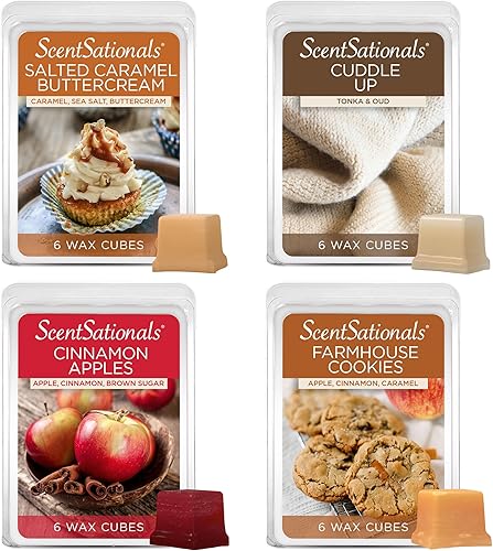Comment on "Scentsationals Fall Wax Melts Home Sweet Home 4pk – Long Lasting, Strong Scent Melts for Warmers, Includes Cuddle Up, Cinnamon Apples, Salted Caramel Butter Cream & Farmhouse Cookies, 10oz (24 Cubes)"
