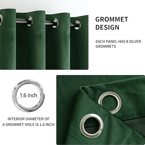 MIULEE Velvet Curtains Olive Green Elegant Grommet Curtain Thermal Insulated Soundproof Room Darkening Curtains/Drapes for Classical Living Room Bedroom Decor 52 x 84 Inch Set of 2(Emerald Green,52"W x 72"L (Pack of 2))