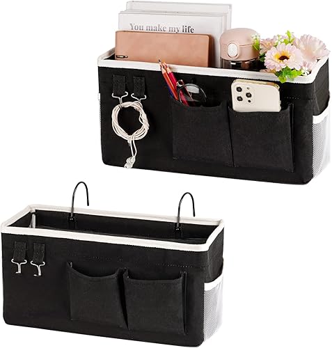 【Product Size】The bed caddy organizer overall size: 37x12x20cm/14.57x4.72x7.87inch. Note: Our bedside organizer caddy hanging storage is suitable for diameter less than 1.97 inch. Suitable for home school college dorm bunk beds, hospital bed rails, crib rails or camping.