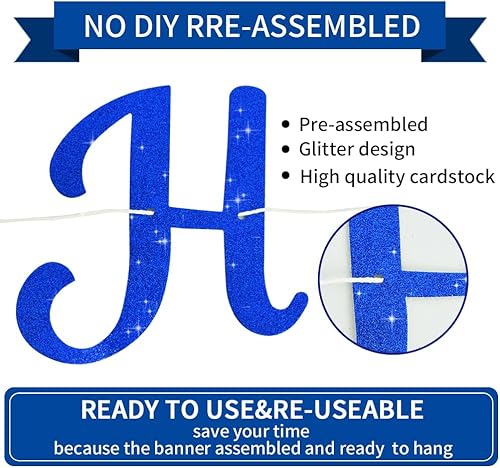 【Reliable material】: Our NO DIY glitter happy birthday banner sign is made of high quality card material, which is sturdy and durable as well as lightweight, also is easy to hang which meant to be reused.