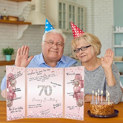 Comment on "DARUNAXY Black Gold 70th Birthday Party Decorations, Happy 70th Birthday Alternative Signature Guest Book for Men Women Cheers to 70 Years Old Gifts 70 Birthday Signing Card Board Party Supplies(Rose Gold 70th Birthday)"