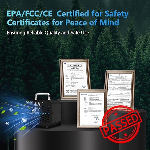 POWERFUL OZONE OUTPUT FOR EFFECTIVE ODOR REMOVAL: The ozone generator provides an impressive 60,000 mg/h of ozone output, making it a highly effective ozone odor eliminator for removing tough odors like smoke, pet smells, cooking odors, and more. It also helps eliminate mold, mildew, and formaldehyde from renovated spaces and new furniture. With EPA certification, this ozone machine ensures reliability and safety for your home, car, and commercial spaces
