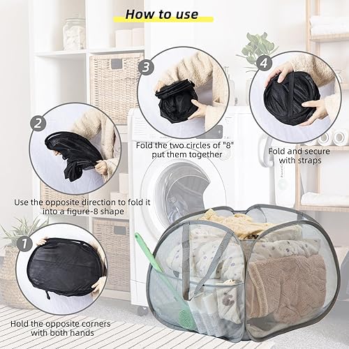 Lightweight yet Sturdy: Weighing 11.3 ounces, each pop-up laundry basket features steel wire around the edges, allowing it to easily fold and unfold while ensuring durability and stability