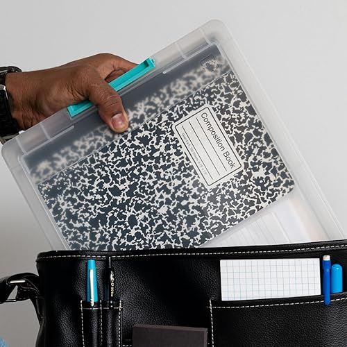MULTI-PURPOSE BINS: This flat storage container box is a perfect storage solution tool to store variety of items at your home, office or dorm. This storage container conveniently accommodates standard (8.5 X 11) paper, files, documents, notebooks, craft and art supplies.