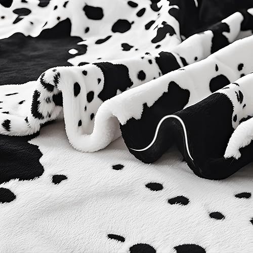 Leopard Print Blanket Fleece Throw for Bed Sofa Travel and Camping, Super Soft Cozy Fluffy Plush Cheetah Print Blanket for All Seasons 50"x60" (Dark Brown)(02 Black Cow,60"x80"-Blanket)