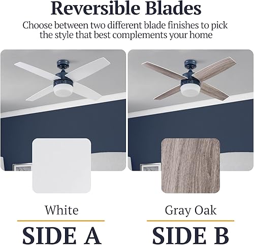DUAL-FINISH REVERSIBLE BLADES: The style is up to you! This ceiling fan comes with a different finish on each side of the blades. One side comes in a beautiful White finish, while the other side showcases a lovely Gray Oak finish. Pick the look that best fits your space!