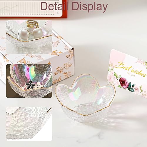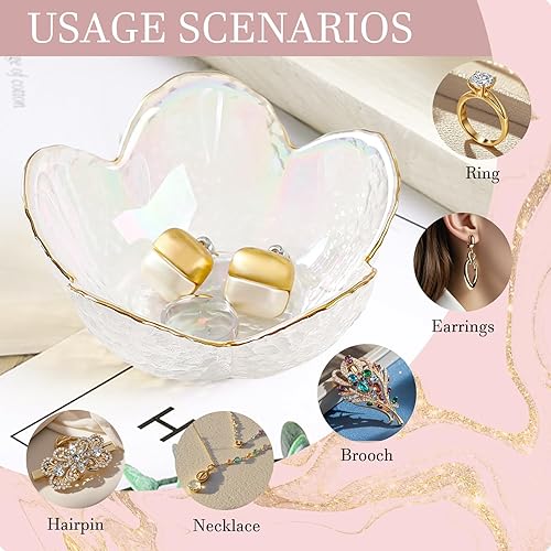 Room Decor Aesthetic Trinket Dish: This small folwer ring dish holder features a beautiful flower design to neatly organize your rings, earrings, necklaces, keys and other jewelry in style on a dresser, desk, bedside, nightstand, sink or vanity countertop. Small ring tray has a cute flower shape designed with gilded edges, crystal ring holder adds a touch of aesthetics to the room decoration.
