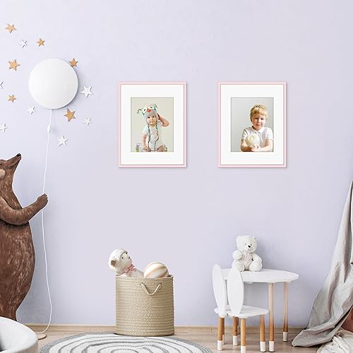 Picrit 8x10 Picture Frame Set of 12, Display 5x7 with Mat or 8x10 without Mat, Photo Frames for Wall Mounting or Table Top Display, Black(Pink,11x14)