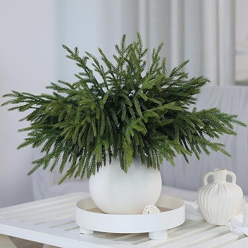 【Sufficient Quantity】: One pack of 16 Pcs real touch norfolk pine branches, to provide you with sufficient supply, as shown in the picture, 16 norfolk pine branches can fill the whole vase, fluffy and beautiful, can also make christmas wreath, garland.