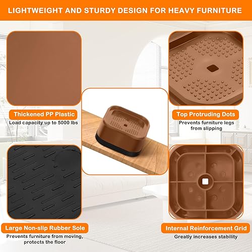 【Sturdy and Stable】Our desk riser is made of thickened pp plastic with solid construction. The rubber non-slip design on the bottom can easily grip the floor not easy to slide. Compared to other bed lifts risers, our plastic risers are small and lightweight but definitely durable for heavy furniture ! Whether it's heavy furniture for home or office, it can be lifted easily and securely.