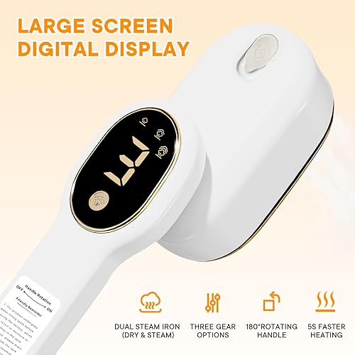 • 【Large LCD Display & 3 Customizable Steam Settings】Equipped with an intuitive LCD screen, this clothes steamer clearly shows the preheating status and three steam gears (Low/Medium/High). Easily select the perfect setting for any fabric, from delicate silks to thick denims, for a precise and safe ironing experience.