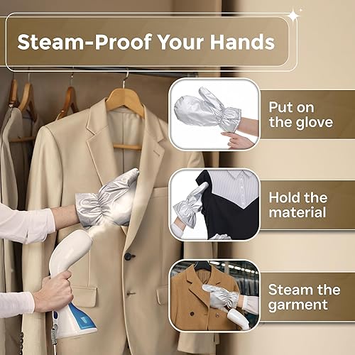 • Protect While You Press – Wear a garment steamer glove to protect your hands from steam when ironing clothes. The steaming mitt provides complete protection for your fingers, palm and back of your hand