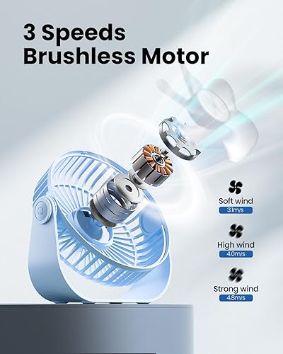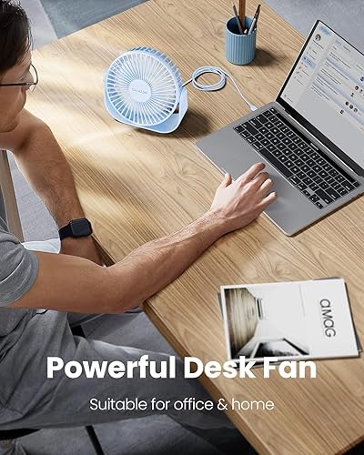 • Ultra Quiet: With upgraded motor, the table fan has stronger wind and less noise, max wind speed reaches 4.8m/s at highest speed; The personal fan is powerful and quiet enough to give you a comfortable working and resting environment