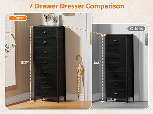 Furnulem White Tall Dresser for Bedroom,Vertical Storage Tower Unit and End Table with 6 Fabric Drawers, Nightstand Furniture with Drawer Organizer in Living Room,Closet,Entryway,Hallyway(Black Oak,11.4"D x 15.8"W x 47.5"H (7 Drawers))