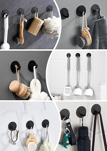 Adhesive Hooks for Hanging, Self-Adhesive Wall Hook for Key Hat Coat, No Drill Stick on Bathroom Towel Hooks, Shower Kitchen Door Home Outdoor 8 Pack, Black(R-Black-90°)