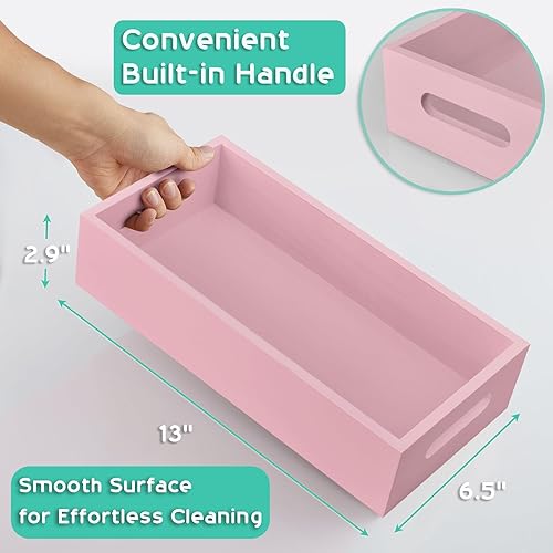 ALELION Black Bathroom Basket - Wooden Toilet Tank Paper Basket with Handle for Organizing - Back of Toilet Storage Organizer for Bathroom Tank Topper Counter - Black Bathroom Decor Box(Pink)