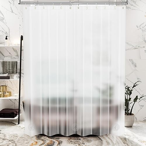 AmazerBath Plastic Shower Curtain Clear Premium PEVA, Clear Shower Curtain Heavy Duty 8G, Weighted Shower Curtains for Bathroom Accessories with 3 Big Stones and 12 Rustproof Grommets, 72x72 Inches(B3-frosted,72"W x 84"L (Pack of 1))